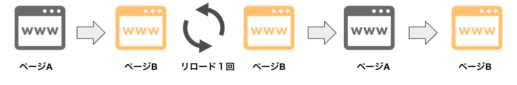 途中で別のページを閲覧するなど、同じ訪問中であっても連続して閲覧しなかった場合は、リロードとしてカウントされません。