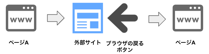 1 離脱リンクで他のサイトに遷移してから「戻る」で戻った場合