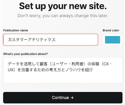 たくさん入力しないといけない登録フォーム画面が表示されると思っていたので、良い意味で拍子抜けしました。おかげで「どんなサイトにしようかな〜」とワクワクしながら登録を進められました。
